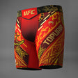 Diese authentische Kampfhose ist das genaue Modell, das von Ilia Topuria getragen wird. Sie besteht aus flexiblem und gleichzeitig komprimierendem Material, das Bewegungsfreiheit und Unterstützung bietet. Bei der Gestaltung dieser Hose hat "El Matador“ die Tradition des spanischen Stierkampfs gewählt und sein Spitzname wird durch einen Stier, der über kräftige rote und goldene Grafiken stürmt, repräsentiert.