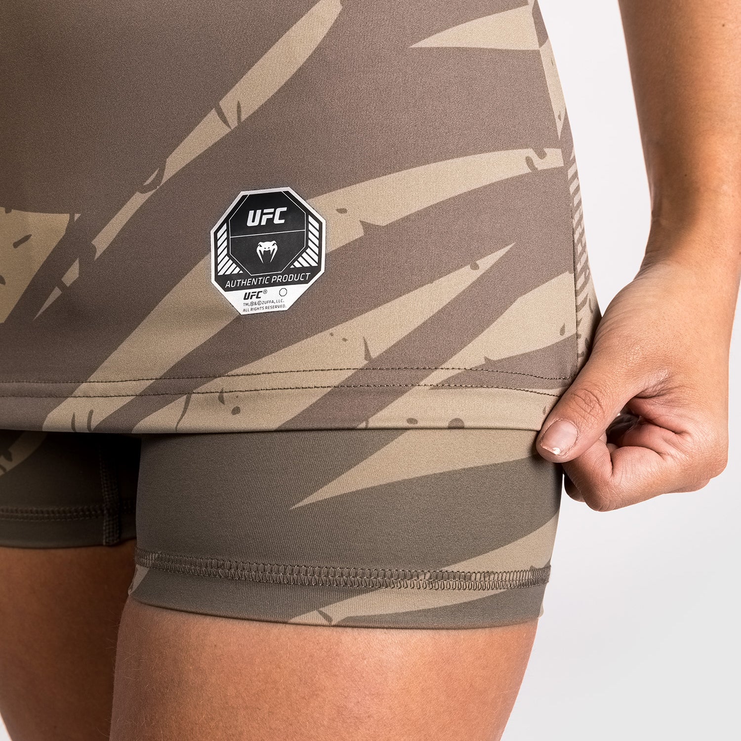 Sein auffälliger Camouflage-Druck mit weißen Venum- und UFC-Logos ist von Athleten inspiriert, die in den Octagon treten, bereit zum Angriff und Konterangriff.