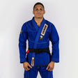 Das Innenfutter mit Monogramm und das dreifarbige Logodesign auf der Rückseite der Jacke verleihen ihr einen besonderen Stil. Hochwertige reflektierende Aufnäher und kontrastierende Nähte runden den blauen Premium-Gi ab.