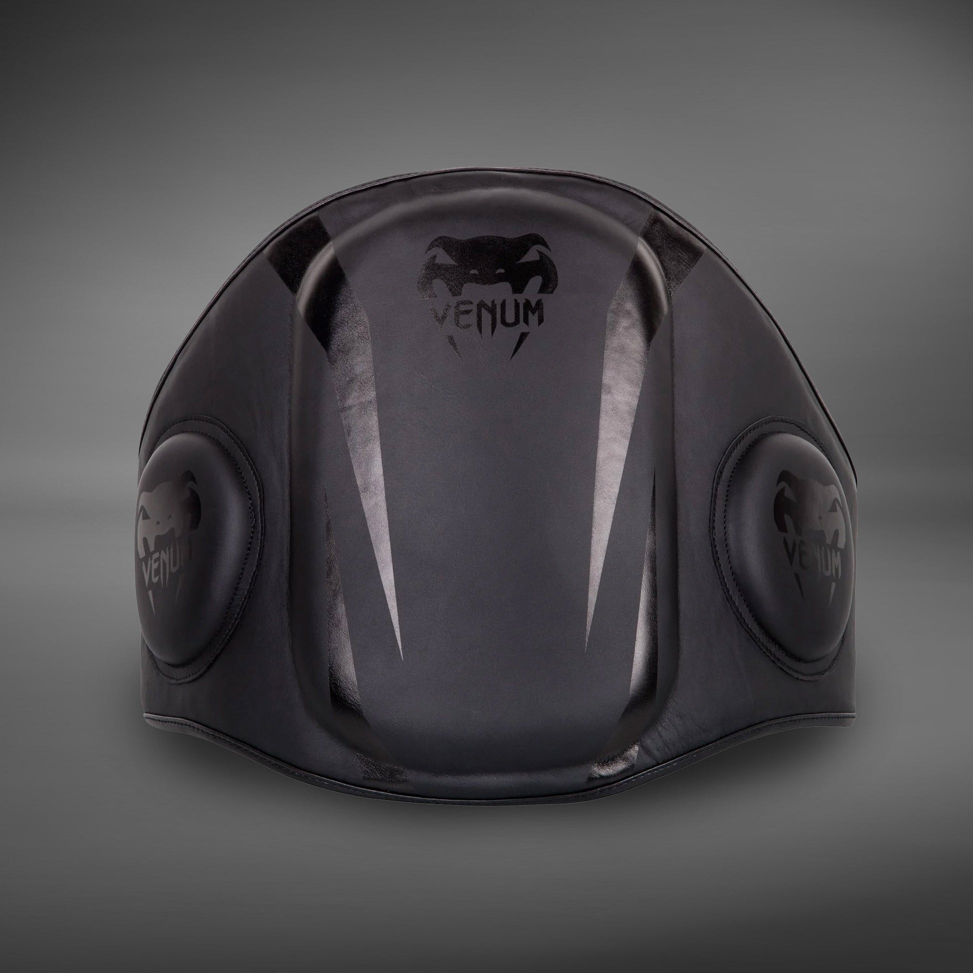 Der Venum Elite Bauchschutz ist aus Halbleder gefertigt und mit einer dreilagigen Hochleistungspolsterung ausgestattet, die verstärkte und strategisch platzierte Bereiche für eine präzise Körper- und Organabdeckung besitzt.