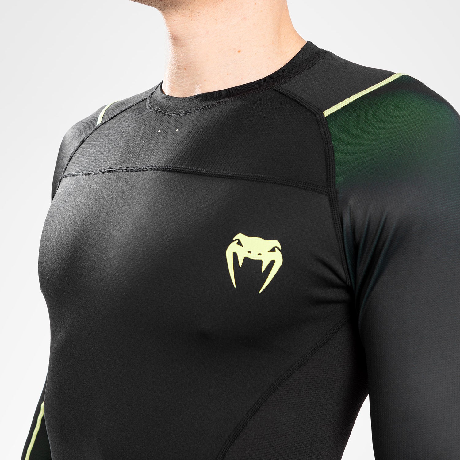 Tragen Sie den Venum Fusion 2.0 Men's Rashguard - Long Sleeves mit den Herren Gamaschen aus der gleichen Kollektion.