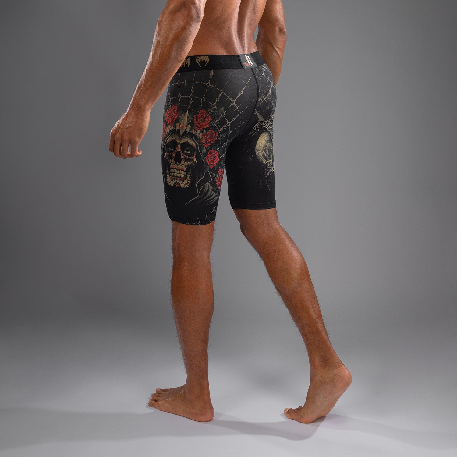 Der Venum Santa Muerte 5.0 Die Vale Tudo Shorts für Herren sind Kompressionsshorts bis zur Mitte des Oberschenkels, die für das intensivste Training ausgelegt sind. Der Stoff ist leicht und sorgt für einen angenehmen „zweite Haut“-Effekt. Kompressionsstoff kann die Muskelregeneration während und nach dem Training fördern.