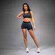 Diese schmeichelhafte Trainingsshort für Frauen wurde mit einem subtilen Ombre-Effekt entworfen, der durch dynamische farbige Linien und pinke Akzente betont wird.