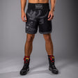 Die subtile sublimierte Grafik auf der Vorderseite dieser schwarzen Shorts zeigt die imposante Figur des Samurai-Kriegers Yasuku, der im Training die Kraft und die Beherrschung der Kampfkünste von Yasuke verkörpert.