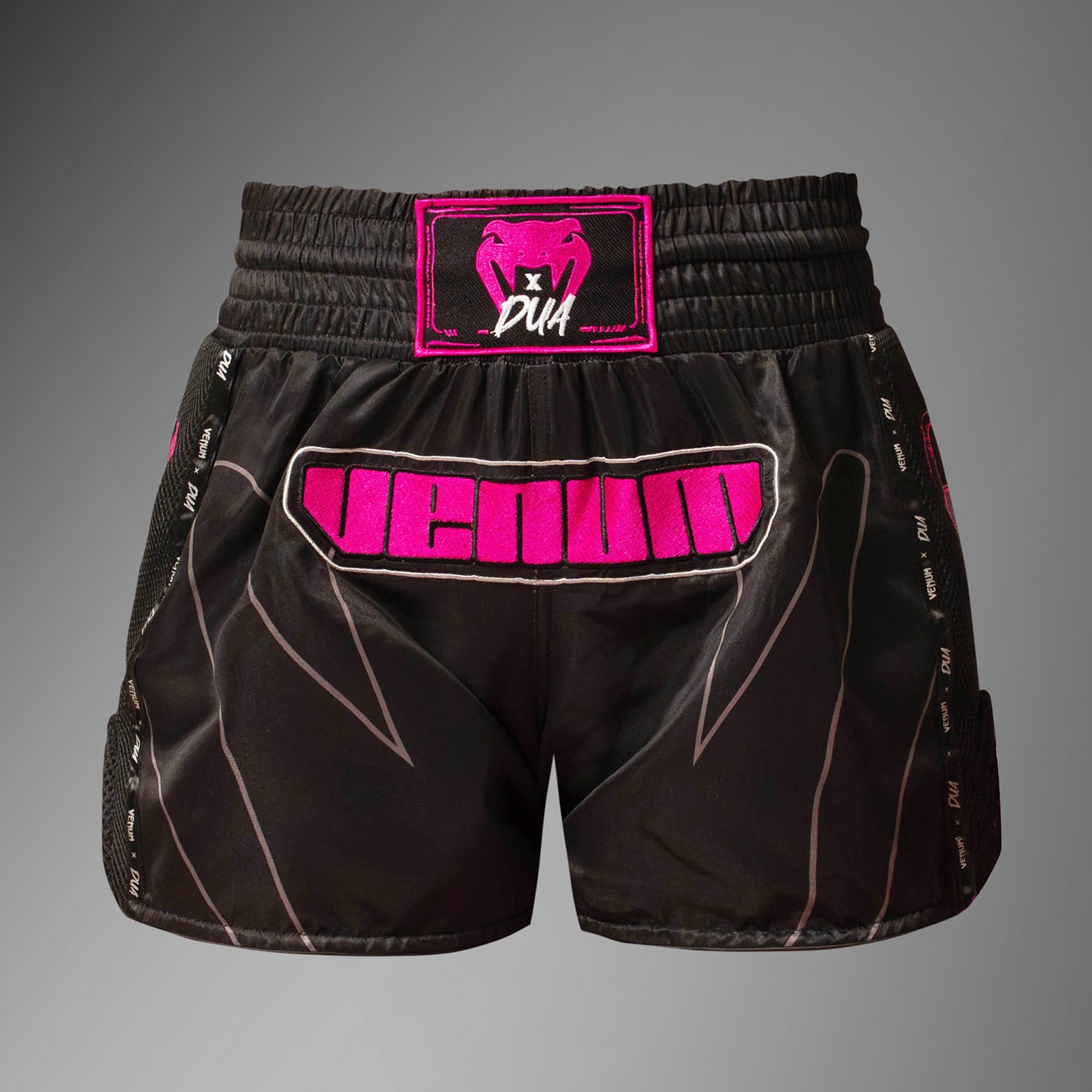 Die Venum x Dua Muay Thai Shorts bestehen aus leichtem, flexiblem Material, das maximale Bewegungsfreiheit garantiert. Seitliche Schlitze sorgen für eine noch größere Bewegungsfreiheit im Ring. Verstärkte Nähte machen diese Thai-Box-Shorts besonders robust - perfekt für intensives Training und Wettkämpfe. Der traditionelle, elastische Bund bietet einen sicheren und unterstützenden Sitz an der Taille, damit du dich voll auf deine Leistung konzentrieren kannst. Sei mutig und bleib dabei spielerisch - mit der Venum x Dua Kollaboration: „Oooweee!“